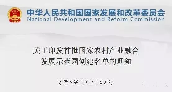 国家发展改革委等七部门联合启动首批国家农村产业融合发展示范园创建工作