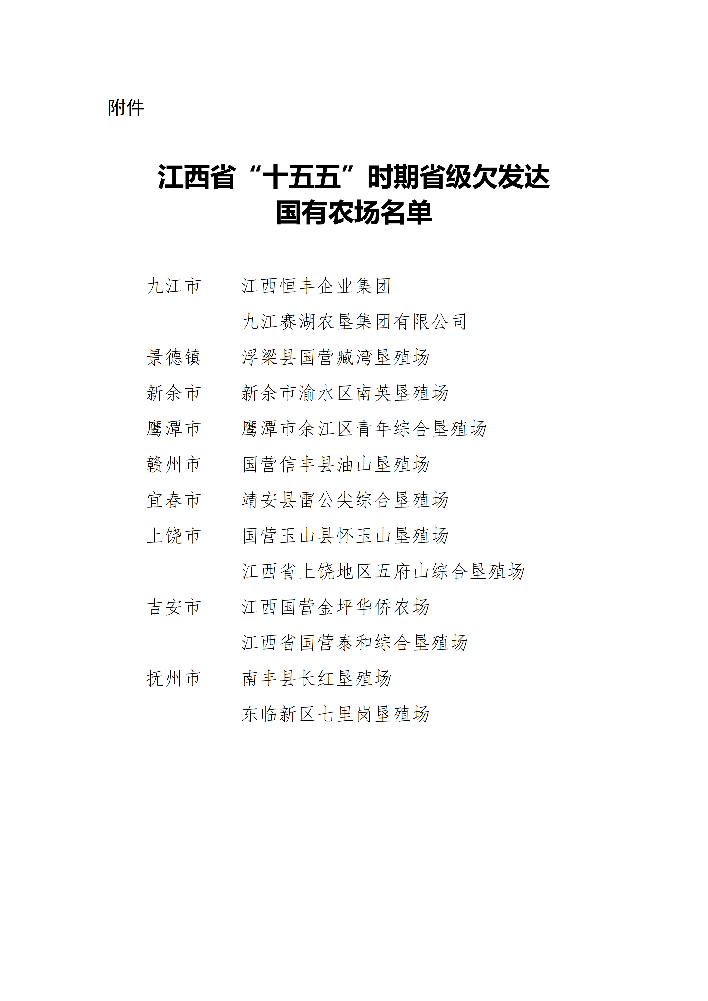 附件:江西省“十五五”时期省级欠发达国有农场名单